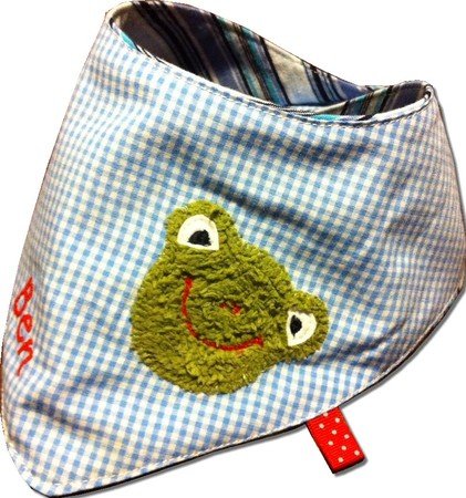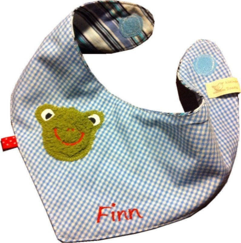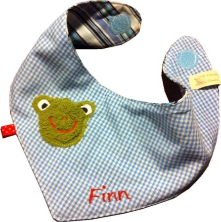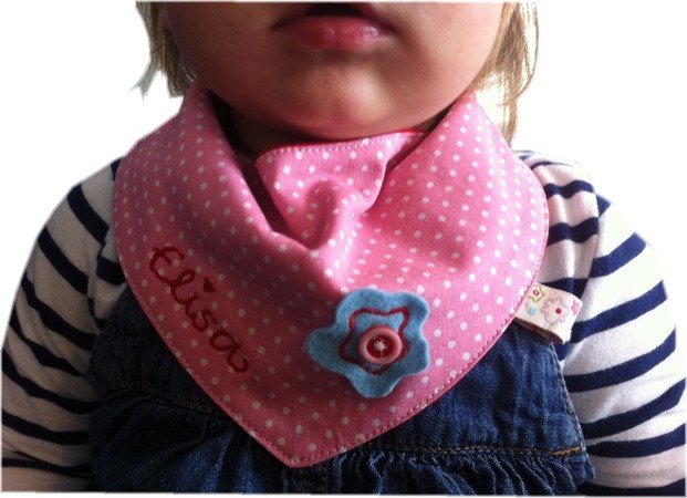 Mit den kleinen Applikationsvorlagen entstehen im Nu individuelle Tücher, die sich angenehm an den Hals schmiegen und mit einem praktischen Klettverschluss geschlossen werden können (oder auch mit einem Druckknopf). Die Anleitung umfasst zwei verschiedene Modelle in unterschiedlichen Größen: eines mit "spitzer" Spitze und eines mit abgerundeter Spitze (Größen: 62-74 und 80-92).