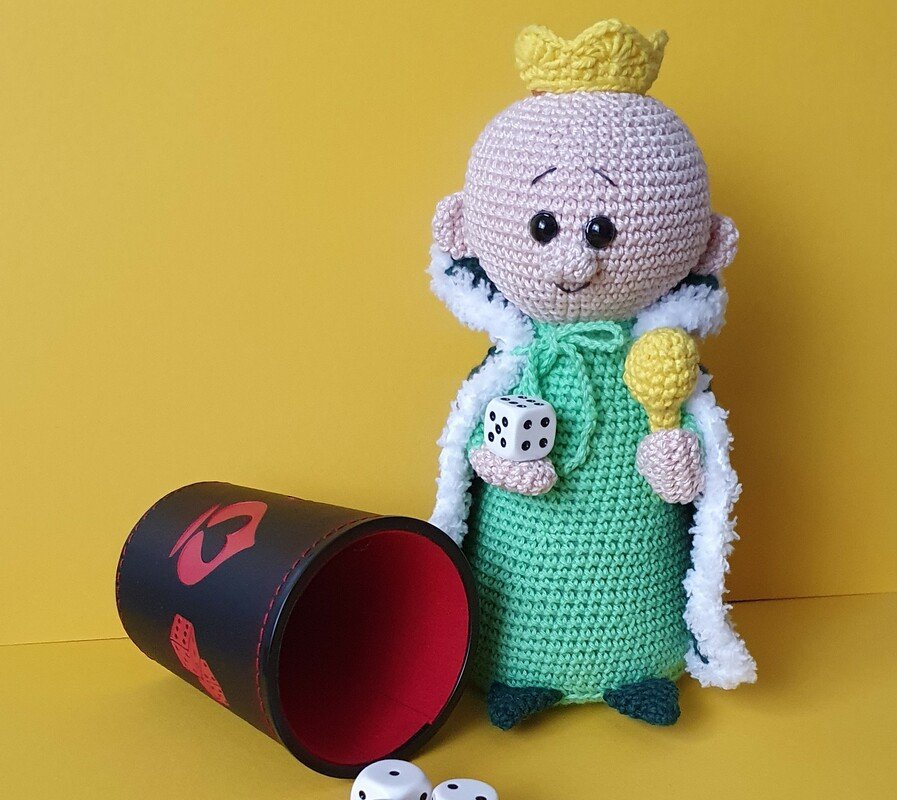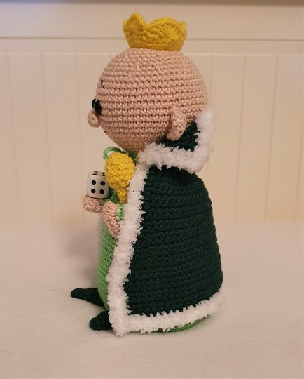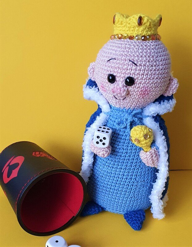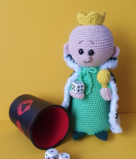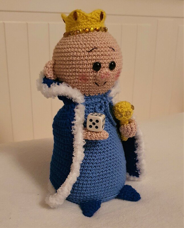 Mit Baumwollgarn 8/4 und einer NS 2 misst Karlchen knapp 20 cm ( incl. Krönchen )