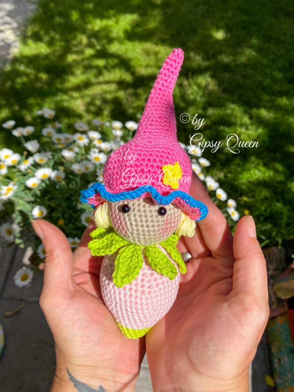 Elfi passt wunderbar in einen Eierbecher oder einen Ton Topf mit einem Durchmesser von 6,5 cm und einer Höhe von 6 cm und auf einem Holzspieß dekoriert Elfi jede Pflanze.