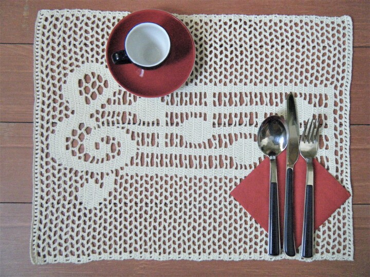 Mein Tischläufer KOBRI Nr 33 https://www.crazypatterns.net/de/items/70521/haekelanleitung-musikmuster-thank-you-for-the-music ist euch vielleicht zu gross, deshalb gibt es nun auch dieses Tischset für Freunde der guten Unterhaltung.