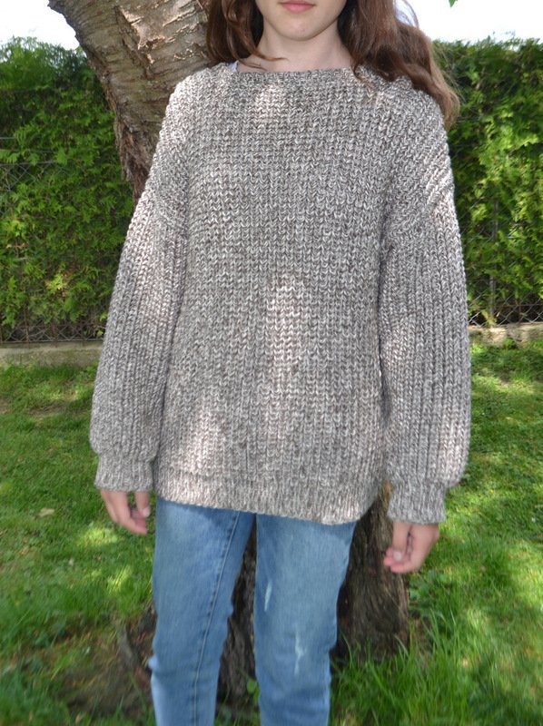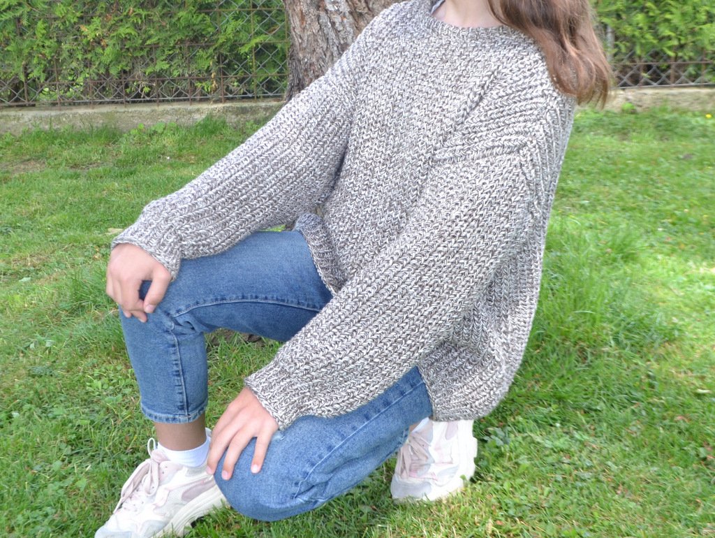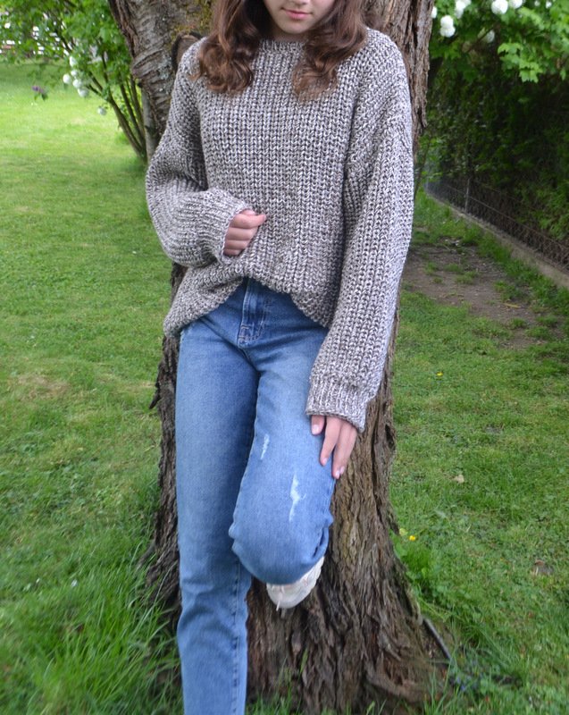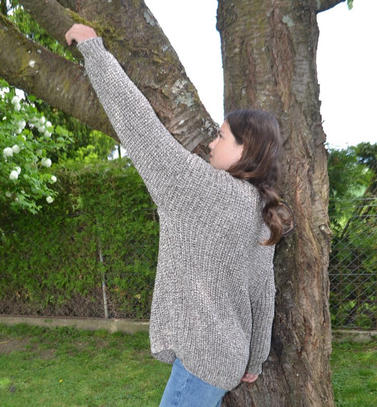 Dieser Pullover mit einfachem Schnitt und voluminösem Muster kann jedes Geschlecht, sowie jung oder alt anziehen. Das Gestrick ist durch das gewählte Material sehr weich und fällt fließend. Wie man in diesem Jahr gemerkt hat, gibt es auch kältere Tage im Frühjahr, oder sogar im Sommer. Statt einer Wolljacke ist diese Baumwoll-Polyacryl Kombination genau das Richtige und zugleich angenehm zum tragen.