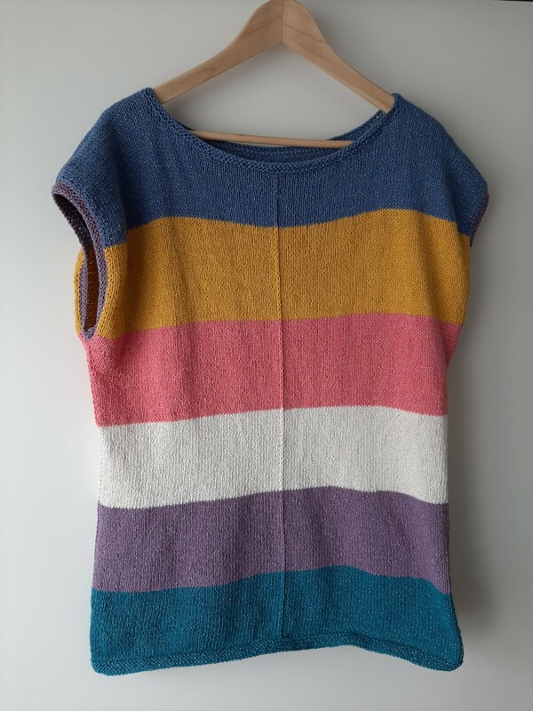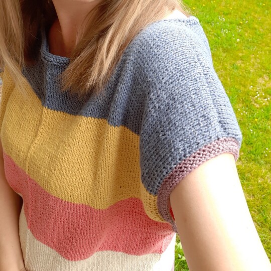 Ein klassisches und zeitloses Design, dass mit einer zarten Hebemaschenlinie besticht. In breiten Blockstreifen bekommt das Shirt zusätzlich einen modernen Look. Das Shirt kann sehr einfach an die eigenen Wünsche angepasst werden.