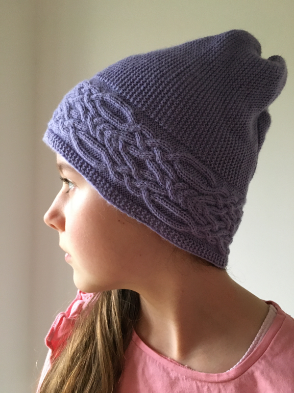 Die Mütze ist quergestrickt. Daher lässt sich die Größe sehr einfach auf andere Kopfumfänge anpassen.