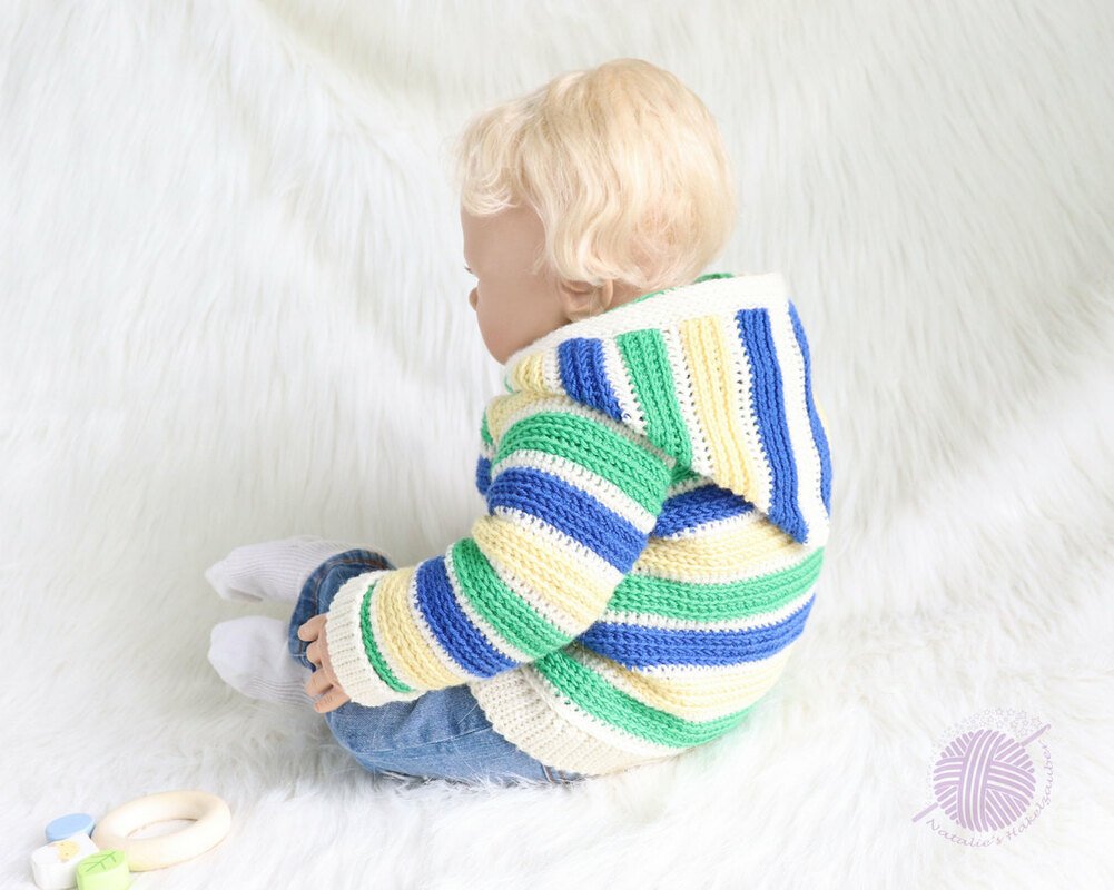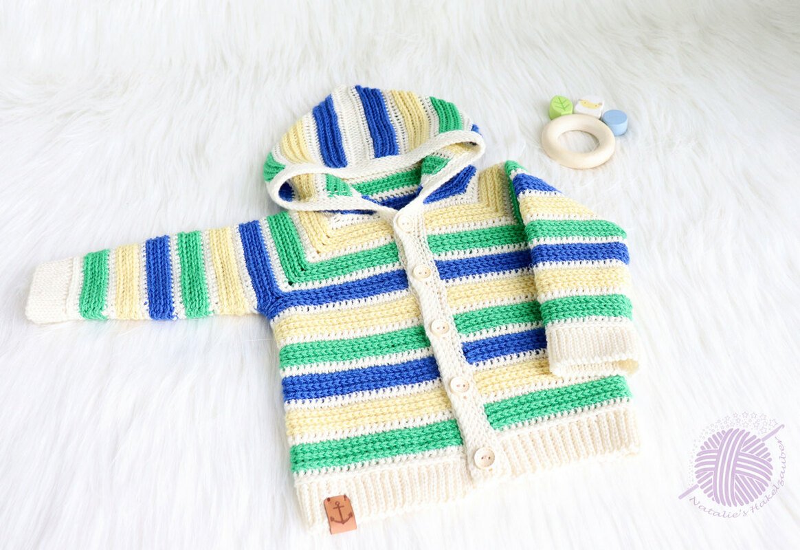 Möchtest Du eine Jacke für dein Kind häkeln, die wie gestrickt aussieht? Dann ist diese Häkelanleitung genau für Dich gedacht. Diese PDF-Häkelanleitung besteht aus bebilderter Anleitung zum Häkeln von Baby- oder Kinderjacke für Gr. 50-128 (0 M. bis 8-jähriges Kind) im stricklook. Die Jacke kann sowohl für den Sommer, als auch für den Winter gehäkelt werden (abhängig von der Wolle). Diese Jacke wird als eine Raglan-Jacke gehäkelt und hat daher keine störende Nähte. Natürlich kannst Du diese Jacke ein- oder zweifarbig häkeln.