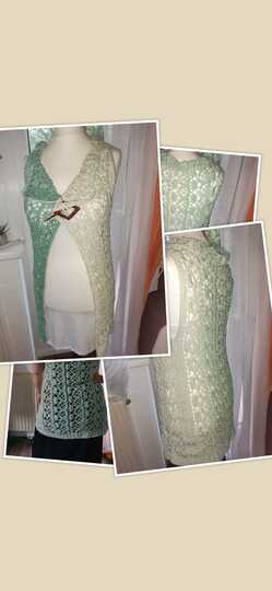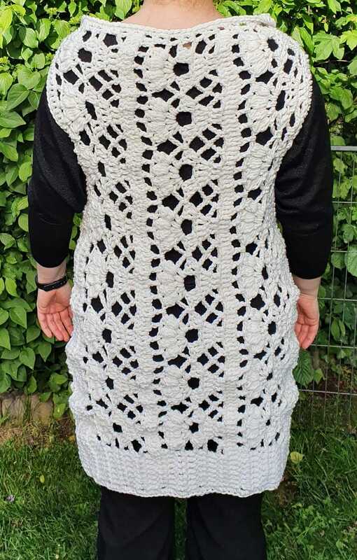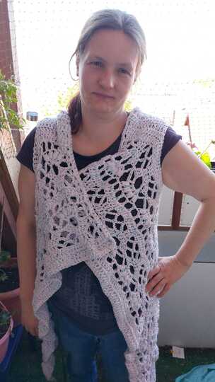 Diese Weste wird quergehäklet und ist durch das einfache Muster sehr schnell gearbeitet. Mann kann sie mit jeder Wolle / Bobbel häkeln mann sollte dann nur sich die Maschenanzahl ausrechnen die mann braucht.