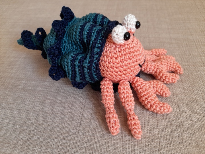 Kjell ist ein lustiger kleiner Geselle, stets neugierig, der mit seinen weichen Scheren gern mal in kleine Nasen zwickt. Aber nur zum Spaß... Er ist ganz stolz auf sein schickes Südsee-Muschel-Häuschen, um das ihn so mancher seiner Freunde beneidet. Mit dieser Anleitung kannst Du Dir das putzige Kerlchen und sein Häuschen ganz leicht selber häkeln.