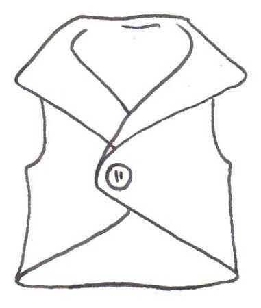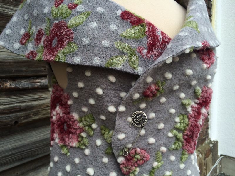 Das Besondere: Der Schnitt kommt ganz ohne Nähmaschine aus, ist aus einem Stück und bekommt einfach nur ein paar Armlöcher - fertig ist die Weste-ruckzuck! Der breite Kragen kann zurückgeschnitten werden, so dass er schmaler wird, die Weste beliebig verlängert oder auch verbreitert werden.