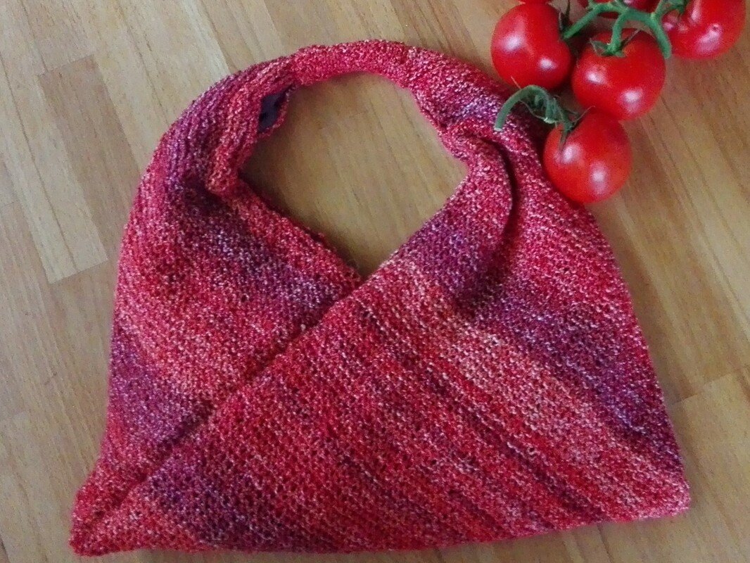 Die Anleitung ist für Anfänger gut geeignet, da nur rechte Maschen verwendet werden. Die Origami-Tasche Rumiko kommt ganz ohne Zu- und Abnahme aus.
