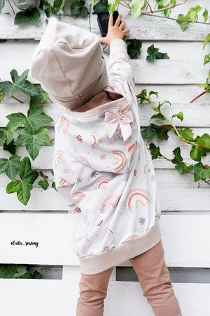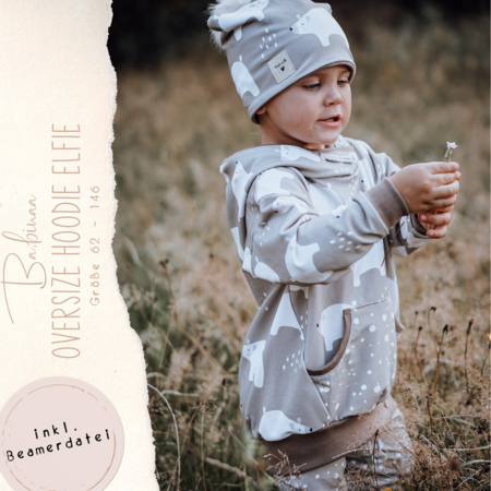 Mit diesem Ebook erhältst du das Schnittmuster Oversize Hoodie Elfie die du mit oder ohne Kapuze, mit oder ohne Bauchtasche und mit einfachen oder Mitwachsbündchen nähen kannst.