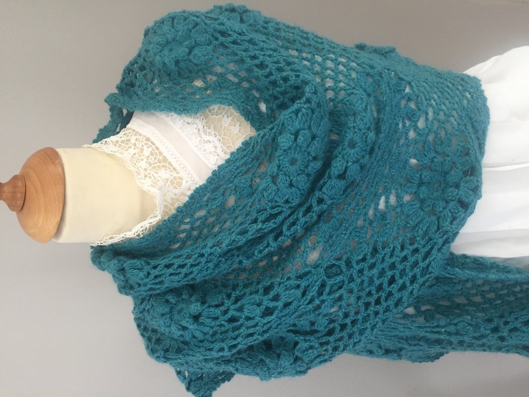 Sutton Sea Breeze Wrap is luxurious lacy soft wrap. The design for the wrap is composed of textured square motifs which are joined as-you-go to form an intricate lace fabric.