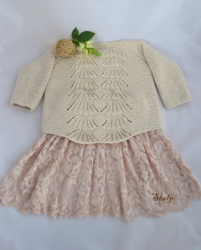 Dieser Baby/Kinder Pullover mit einem Fächermuster am Vorderteil ist für den Alltag, so wie festliche Angelegenheiten und für jedes Mädchen genau das Richtige.