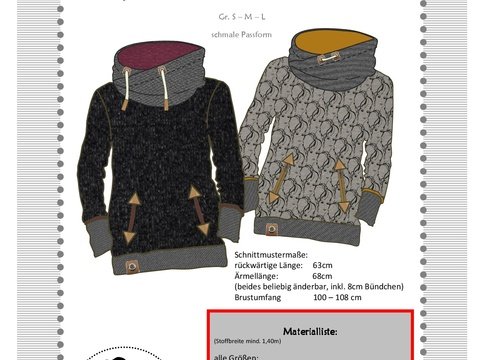 Der Schnittmuster beeinhaltet mehrere Doppel-Größen (Gr. 98/104 - 122/128)