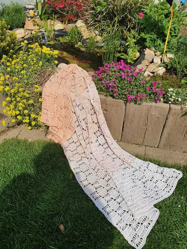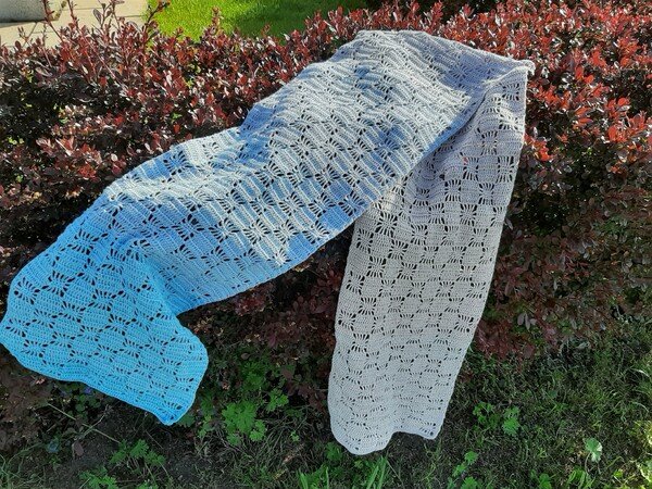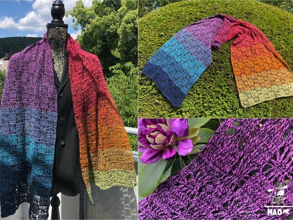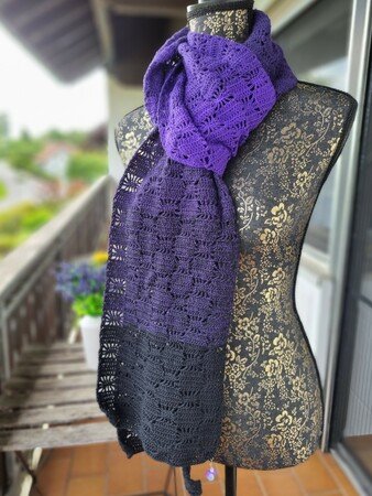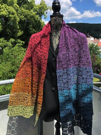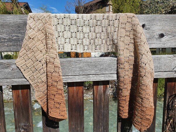Der Schal bzw. die Stola kann in beliebiger Breite und Länge gearbeitet werden.