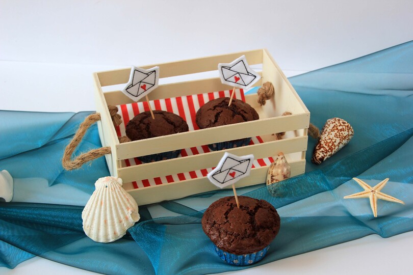 In die kleinen Schiffe können Buntstifte (Standardgröße) oder auch Zahnstocher gesteckt und als Topper für Muffins verwendet werden.