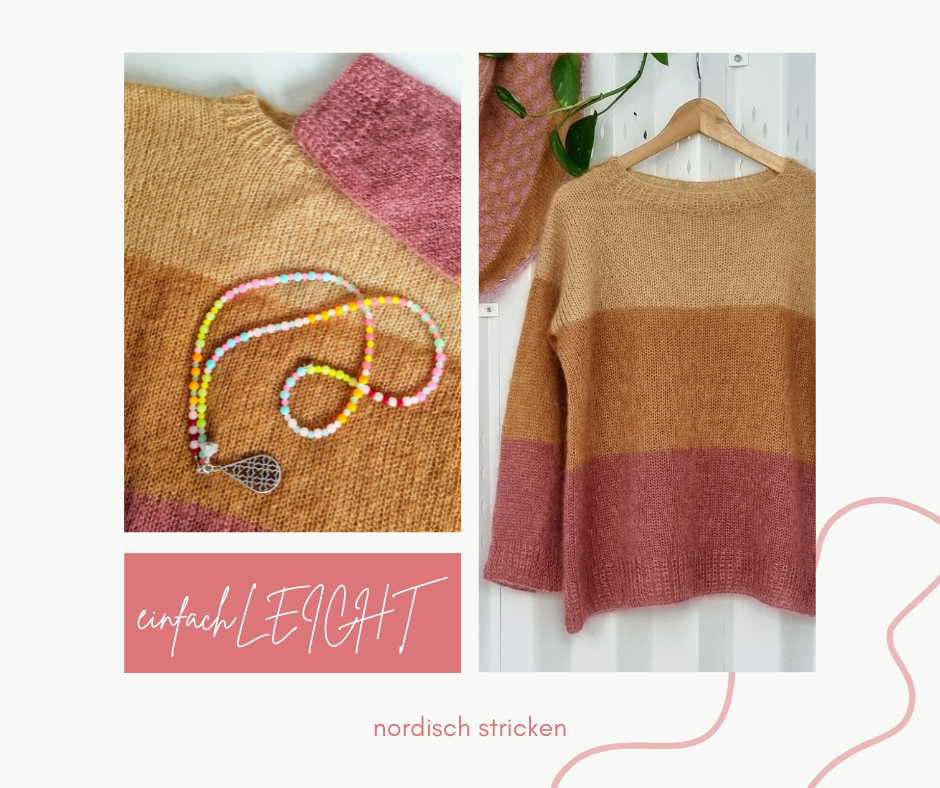 Das Material macht ihn zu einem leichten Strickprojekt mit nur wenigen 100 Gramm. Doch es gibt noch eine zweite Bedeutung. Dieser Pullover ist leicht zu stricken - von oben nach unten und in einem Stück - ideal auch für nicht so geübte Stricker*innen.