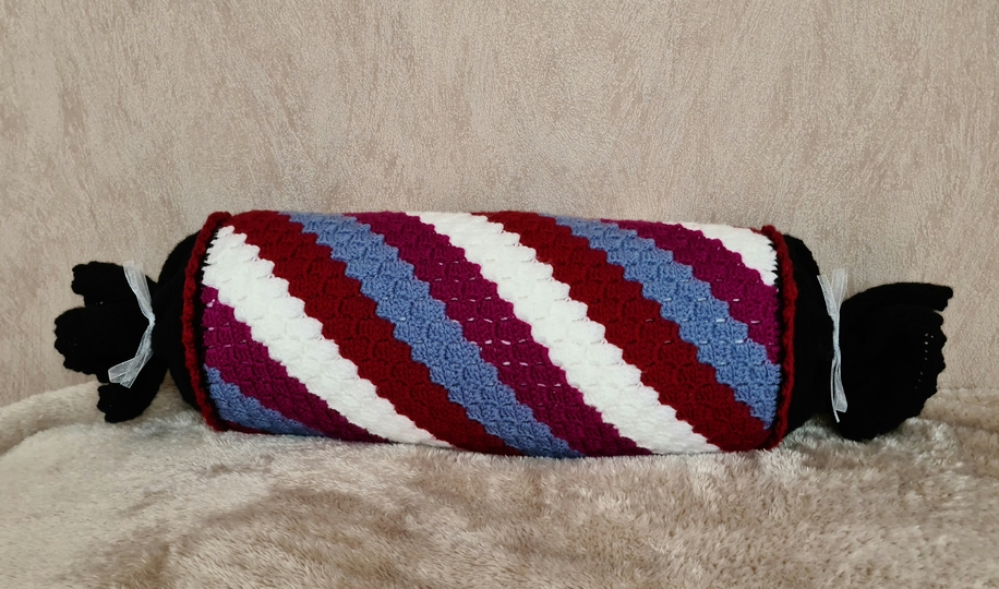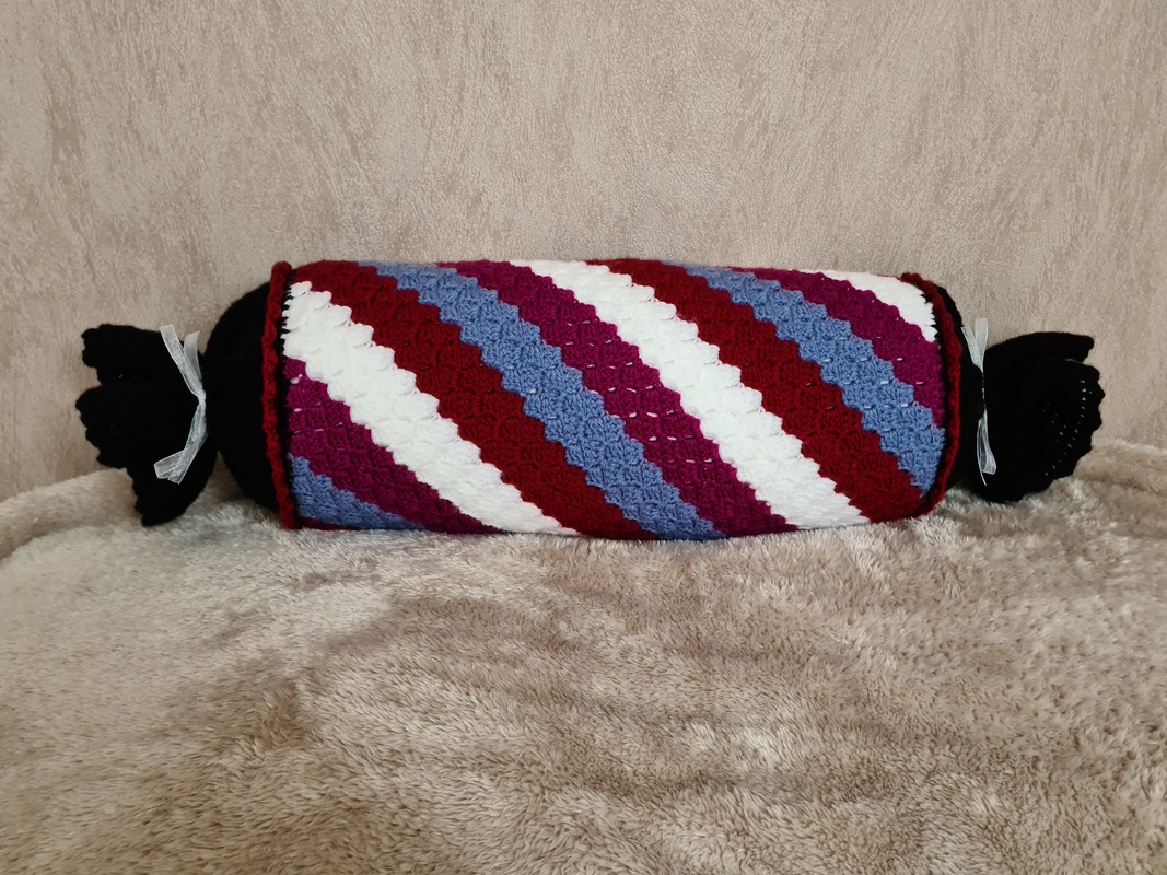 Die Rolle ist mit Acrylgarn gehäkelt. Und mit einer 4 mm Häkelnadel.