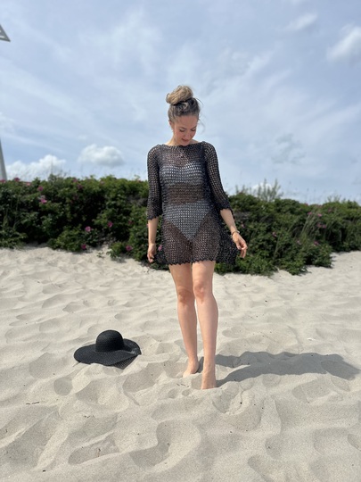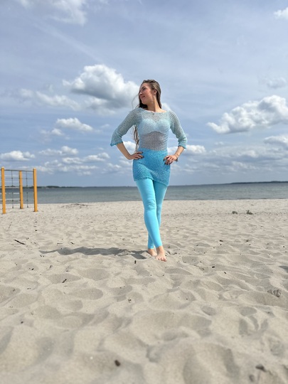 Hier bekommst Du eine Anleitung für den super schnellen und luftig leichten 1-Bobbel-Sommer-Netzpulli. Wie der Name schon sagt, benötigst Du nur EINEN Bobbel, denn das Sommernetz wird in einem Stück gehäkelt. Hierfür benötigst Du KEINE extra Bobbel für die Ärmel. Der Netzpulli ist ein echter Hingucker am Strand über dem Bikini. Da hüpft das Gefühl von Urlaub von der Nadel an Deinen Körper.