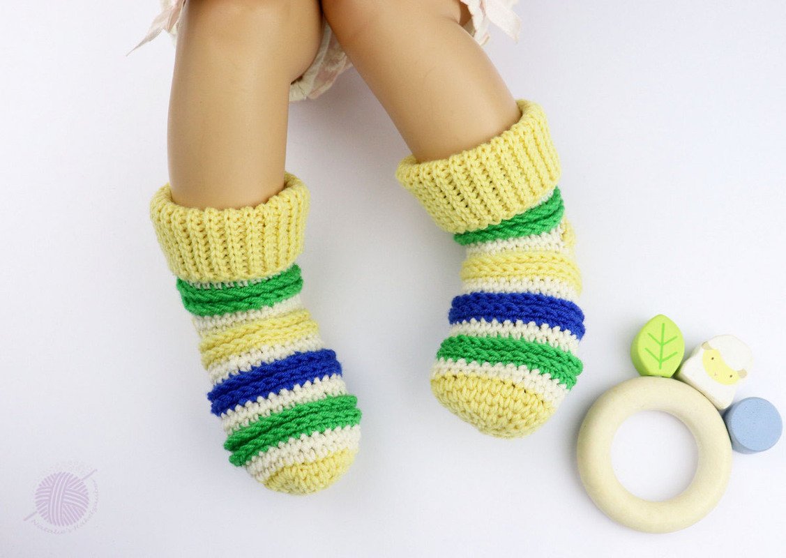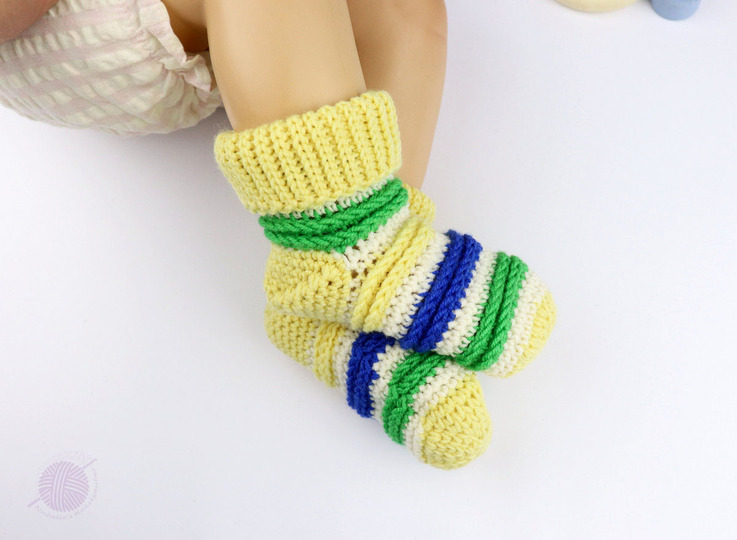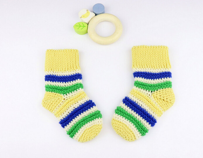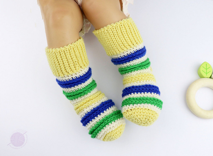 Weiche Baby- & Kindersöckchen schnell und unkompliziert für Dein Kind oder Enkelkind häkeln, ist mit dieser Anleitung überhaupt kein Problem! Ein ausgeprägtes Reliefmuster, leicht anpassbare Größe und das Bündchen im Stricklook machen diese Söckchen auf den Baby- und Kinderfüßen sehr entzückend.