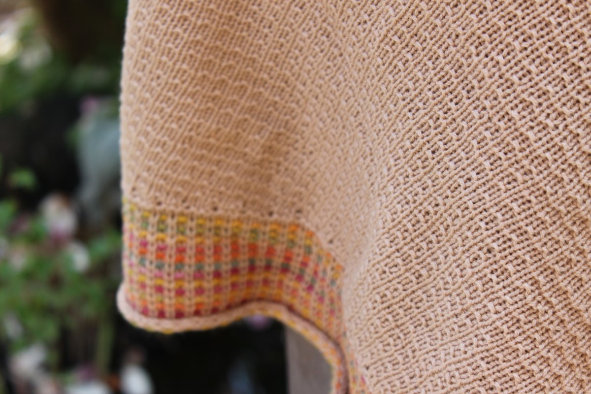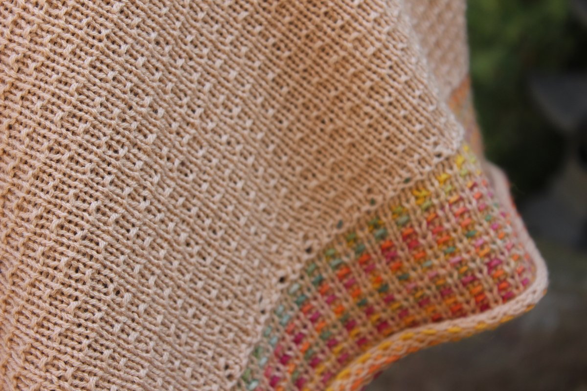 Das Tuch wird von unten nach oben gestrickt. Die Anleitung ist ausgeschrieben.