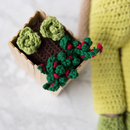 Dieses Set beinhaltet: Pixiehaube und Schirmkappe, Romper, Schuhe, Gießkanne und Bastelbonus: Hochbeet.