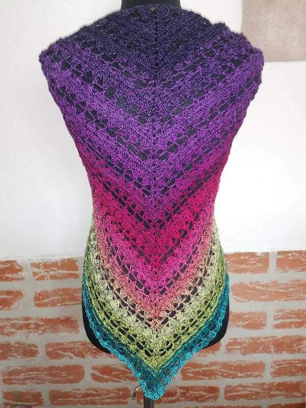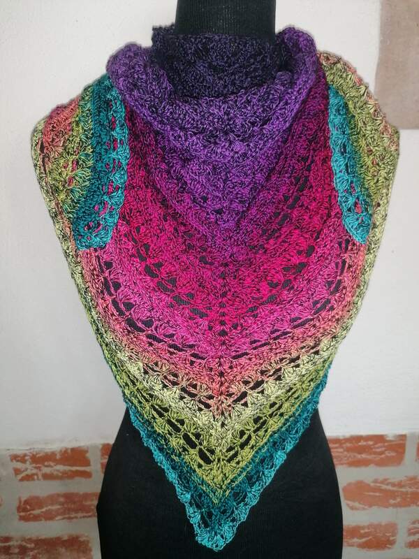 Die Anleitung zum Tuch besteht aus schriftlich ausformulierten Reihen und beinhaltet eine Häkelschrift.
