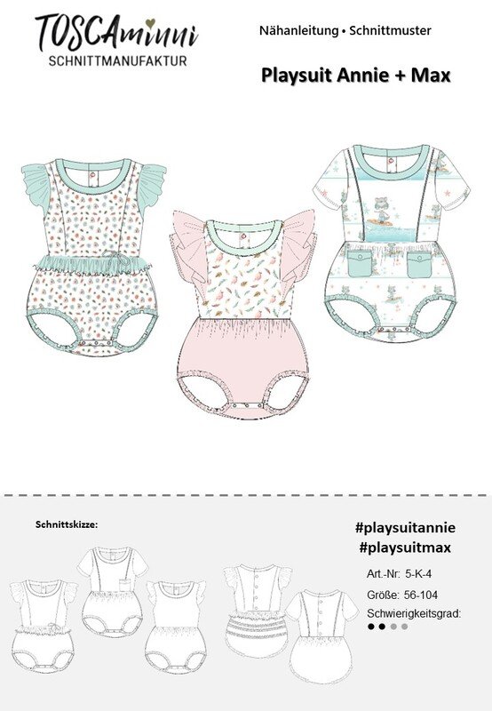 Mit dem Schnittmuster Annie nähst Du einen süßen Playsuit, Overall oder Jumpsuit für Dein Kind. Das Playsuit ist sowohl für Mädchen als auch für Jungs geeignet. In der Nähnleitung sind Vorschläge zur Gestaltung für Jungs und Mädchen mit enthalten. In der Datei sind zwei verschiedene Höschen enthalten, das eine normal, das andere weiter - es wird erklärt, wie Du die richtige Größe auswählst und die Passform an Dein Kind anpassen kannst. Du kannst den Jumpsuit sowohl aus Webstoff als auch Jesey nähen.