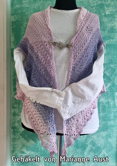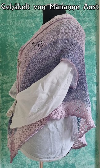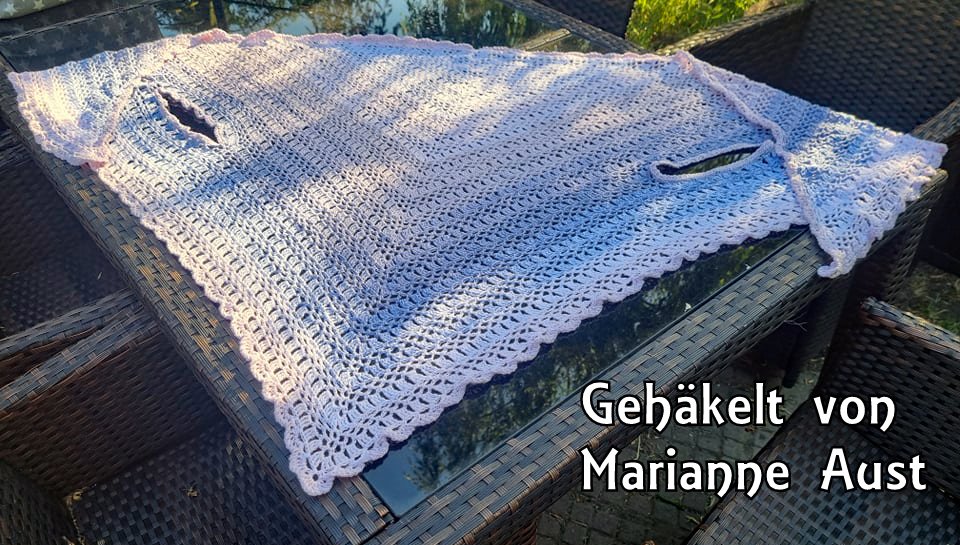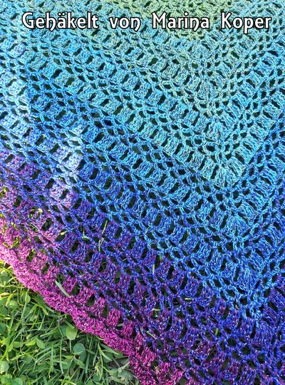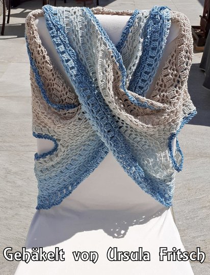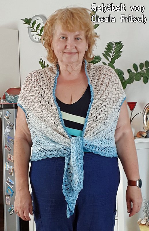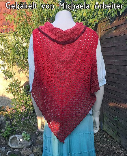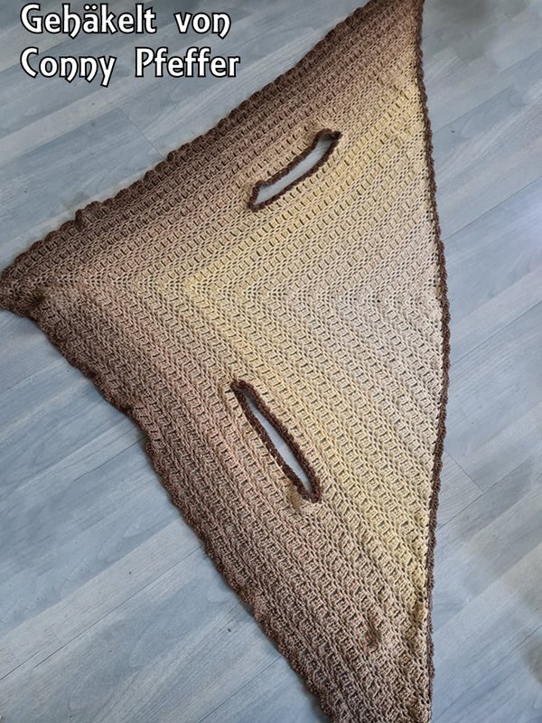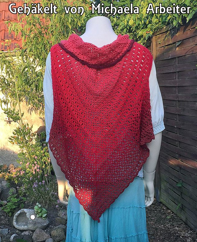 So eignet sich dieses Muster zum entspannten Häkeln am Feierabend oder im Urlaub. Du kannst die Armausschnitte aber auch weglassen, dann hast du ein klassisches Dreieckstuch.