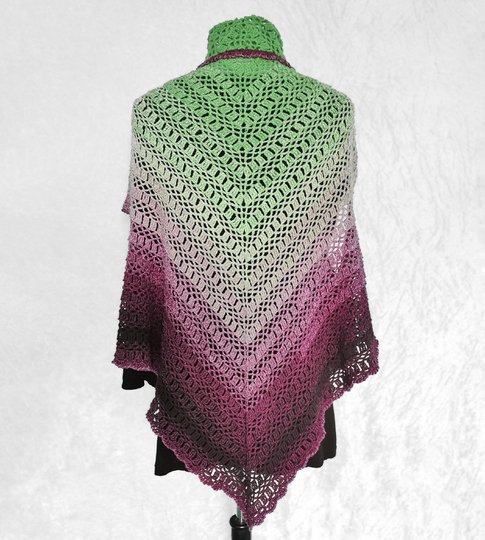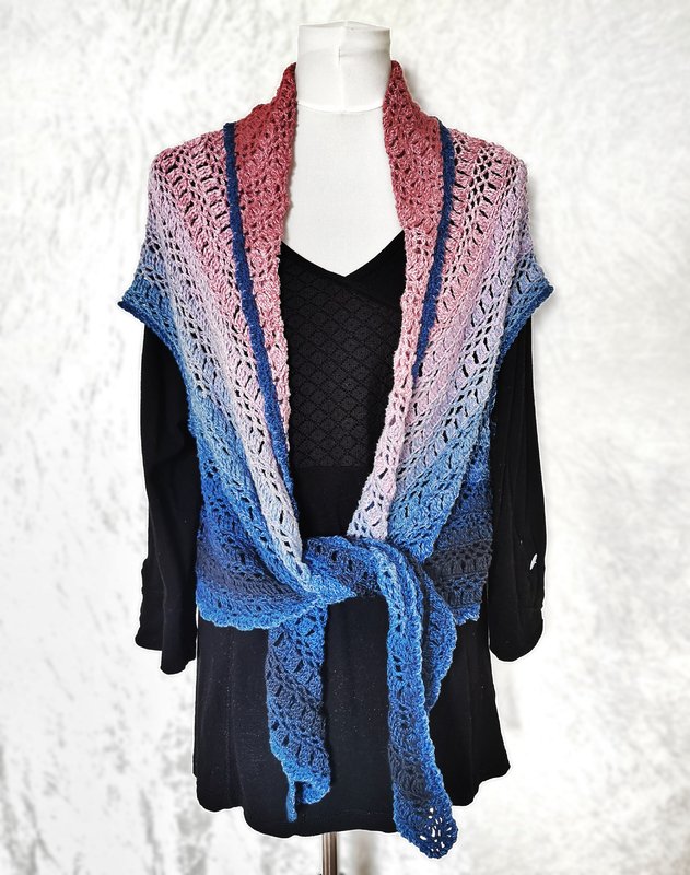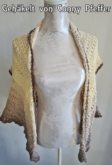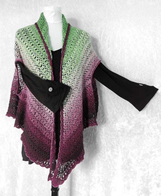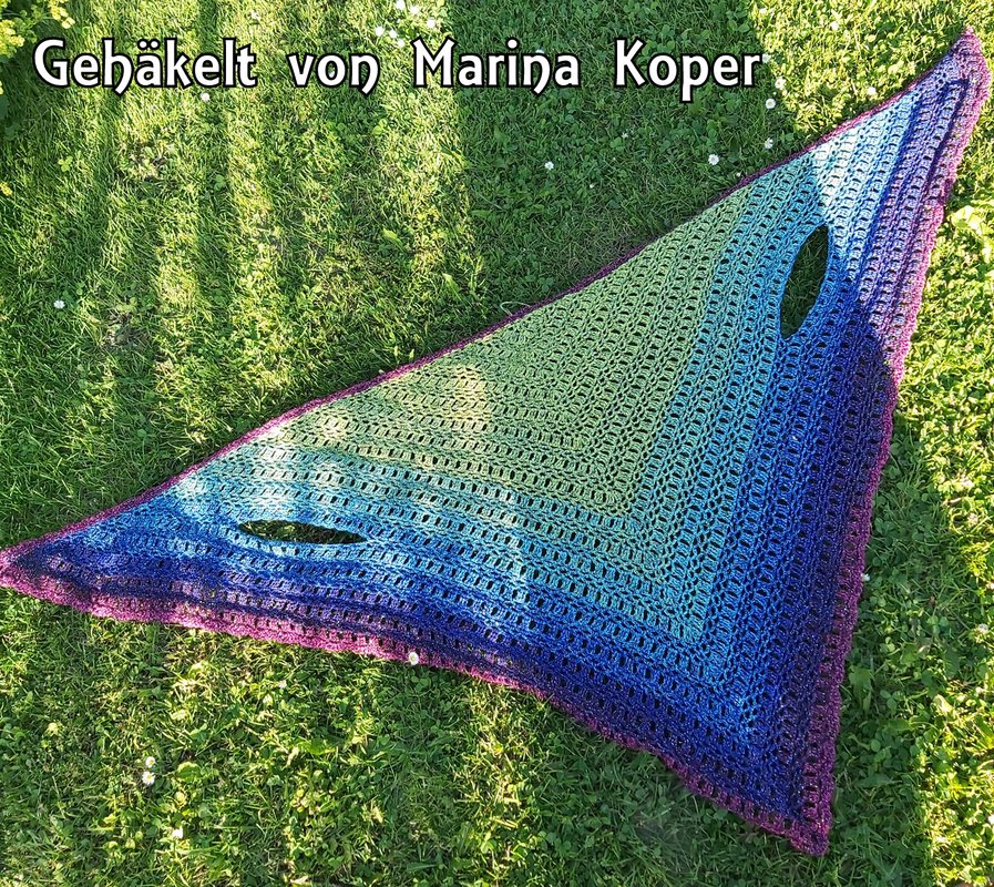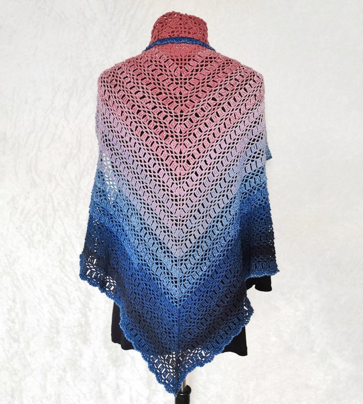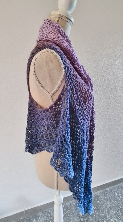 So eignet sich dieses Muster zum entspannten Häkeln am Feierabend oder im Urlaub. Du kannst die Armausschnitte aber auch weglassen, dann hast du ein klassisches Dreieckstuch.