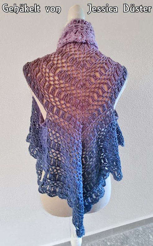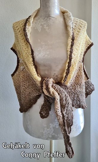 Diese gehäkelte Tuchweste ist von XS - XXL ganz leicht anpassbar.