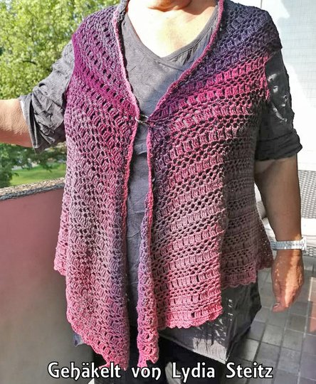 Diese Häkelanleitung für eine Tuchweste enthält: