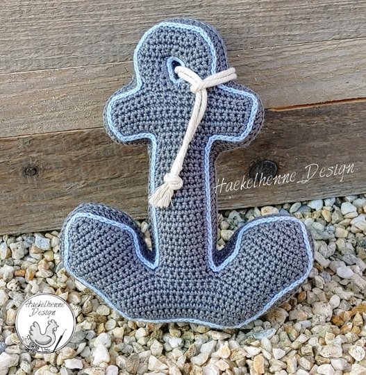 Der Anker erreicht eine Höhe von 21 und eine Breite von 17 cm. Das Maß bezieht sich auf die Arbeit mit einer Nadelstärke von 2,5 mm. Das Maß kann durch Häkelstil, Garn und NS variieren.