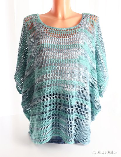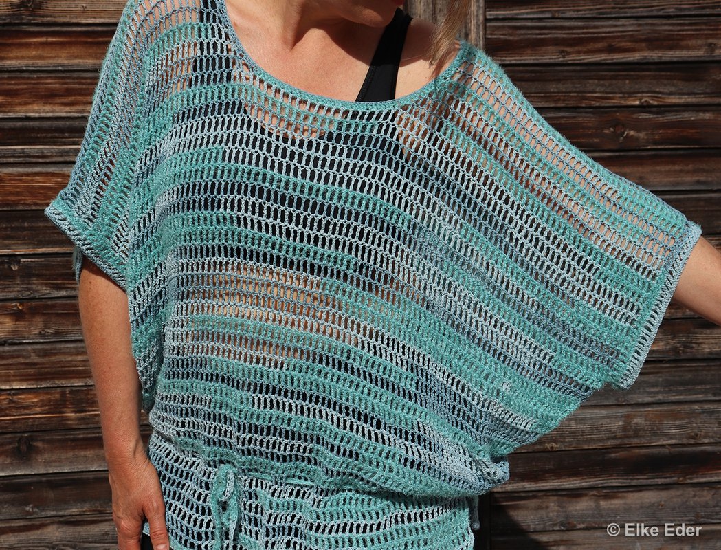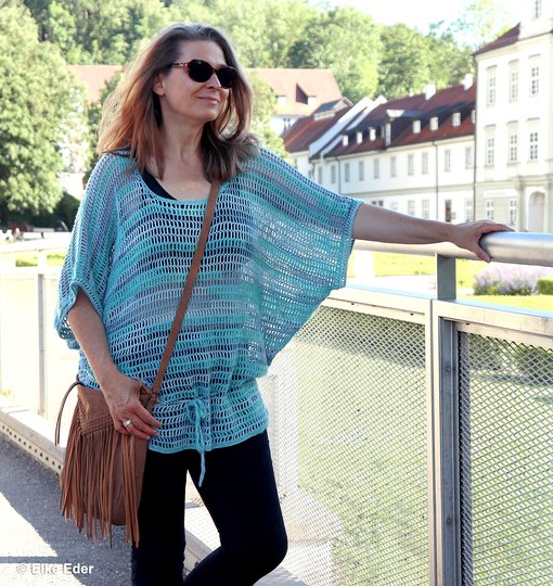 Diese lässige Tunika mit Fledermausärmeln im angesagten Oversize-Look ist schnell und einfach gehäkelt und ein absoluter Blickfang. Das Muster ist einfach, der Schnitt ist figurumspielend und außergewöhnlich. Ich habe ein Effektgarn verwendet, die Tunika kann aber natürlich auch mit deinem Wunschgarn gehäkelt werden.