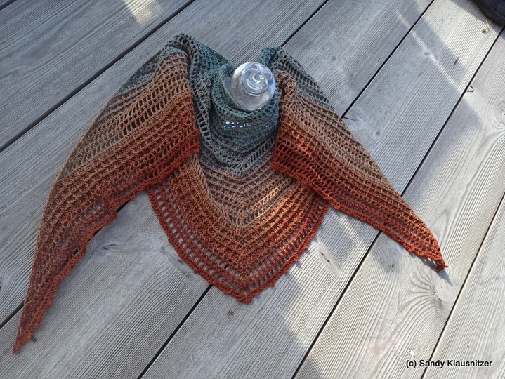 Im Zuge der Überarbeitung der Autumn Air Anleitung in der "normalen" Dreiecksform, wurde nun auch - auf vielfachen Wunsch- eine flache Version des Tuches erstellt.