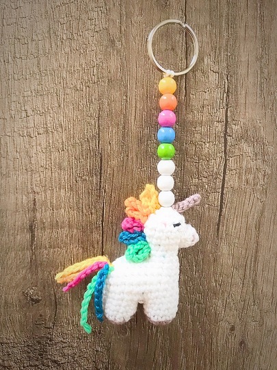 Das KLEINhorn eignet sich als Glücksbringer, Schlüsselanhänger oder Taschenbaumler.