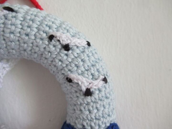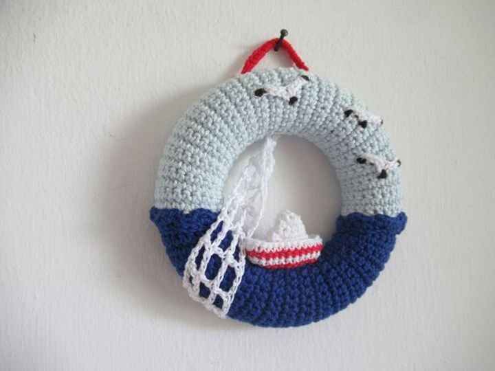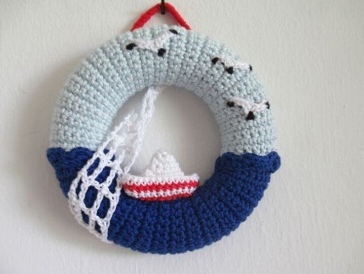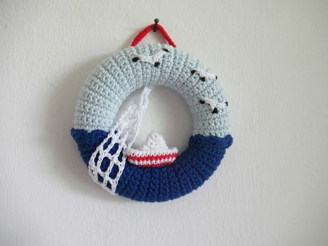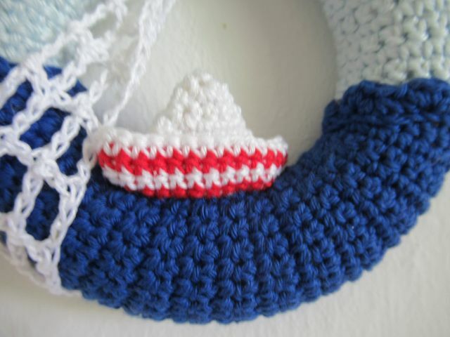 Eine kleine , einfache Dekoration für den Sommer: Der kleine Kranz hat nur 12 cm Durchmesser und lässt sich als Tür-, Wand- oder Fensterdekoration einsetzen.Aus wenigen Wollresten ist er schnell gehäkelt.