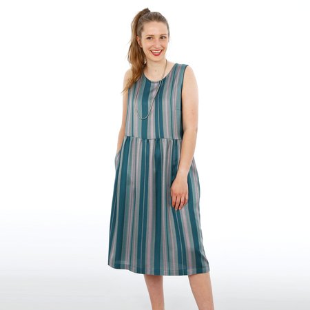 Luftige Trägerkleider sind die Verkörperung des Sommers. Nichts zwickt oder engt ein und der Stoff fließt luftig um Deinen Körper. FRAU ADELE kann dies in Perfektion. Das locker geschnittene Oberteil mit rundem Ausschnitt und breiten Trägern trifft auf ein gekräuseltes Rockteil, das maximale Bewegungsfreiheit ins Spiel bringt. Dazu noch eine mittige Knopfleiste im hinteren Oberteil und praktische Seitennahttaschen im Rockteil und der Sommer kann kommen!