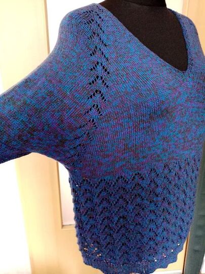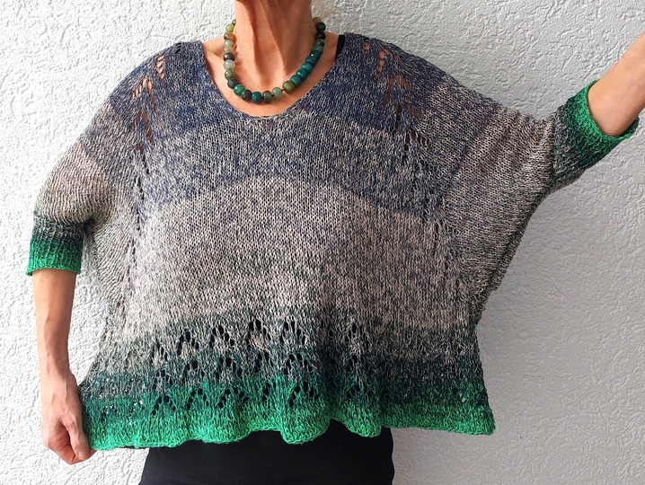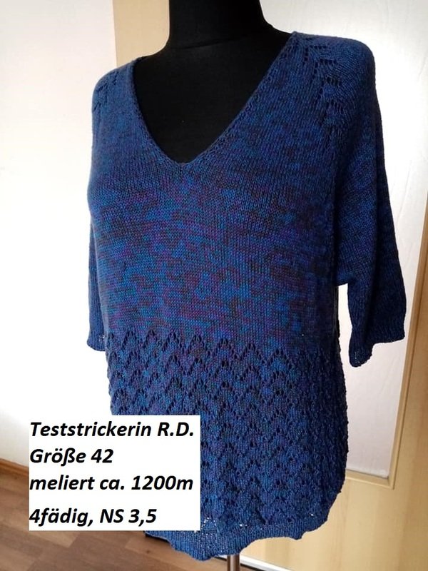 Das luftige Oversize Oberteil "Schwarzwaldmädel" wird in Raglan von oben Technik gestrickt und kann so ganz leicht an alle Größen und Längen angepasst werden. Das Oberteil hat einen V-Ausschnitt und als Blickfang stricken wir in der Raglanschräge ein Ajourmuster. Wer es länger mag, strickt das untere Ajourmuster bis zur gewünschten Länge und erhält so eine Tunika. Der V-Ausschnitt wird mit einem I-Cord Rand gestrickt. Dazu habe ich eine Fotostrecke gemacht. Die Anleitung wurde Reihen/Rundenweise geschrieben. Strickschriften ergänzen die Strickanleitung. Zunächst stricken wir in Hin-und Rückreihen, später in Runden. Die Ärmel werden im Anschluss direkt angestrickt. Bei Fragen stehe ich zeitnah zur Verfügung.