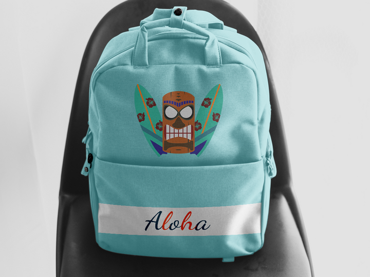 Es handelt sich bei dem Produkt um eine Plotterdatei eines Beach-Motivs, welches aus einer Tiki Maske, Surfbrettern und der Aufschrift "Aloha" besteht.