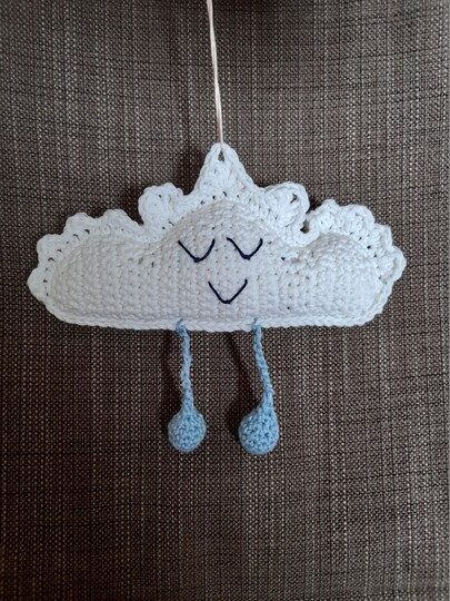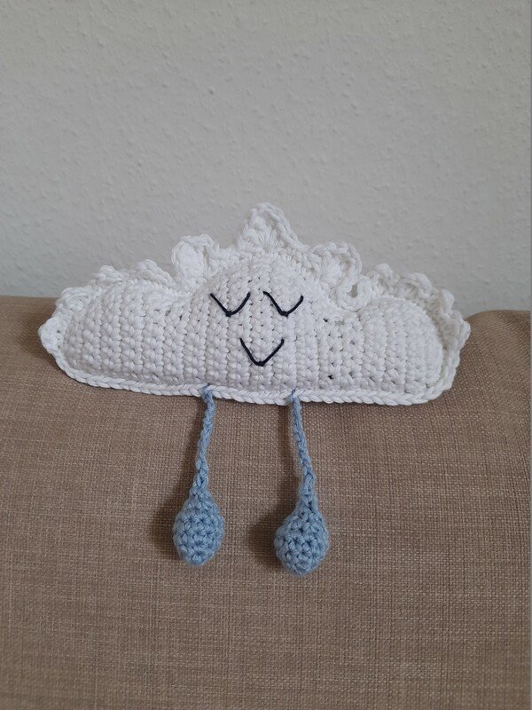 Wulkje, die süße kleine Wolke, träumt am liebsten den ganzen Tag vor sich hin und baumelt mit Ihren Regentropfen-Beinchen. Ihr Lieblingsplatz ist ein gemütliches Schlafzimmer. Hier döst sie gern auf einem weichen Kopfkissen, baumelt am Fenster oder über Kinderbettchen und Kinderwagen.