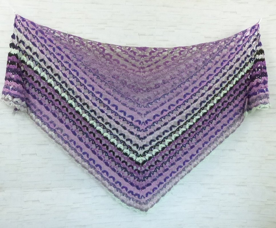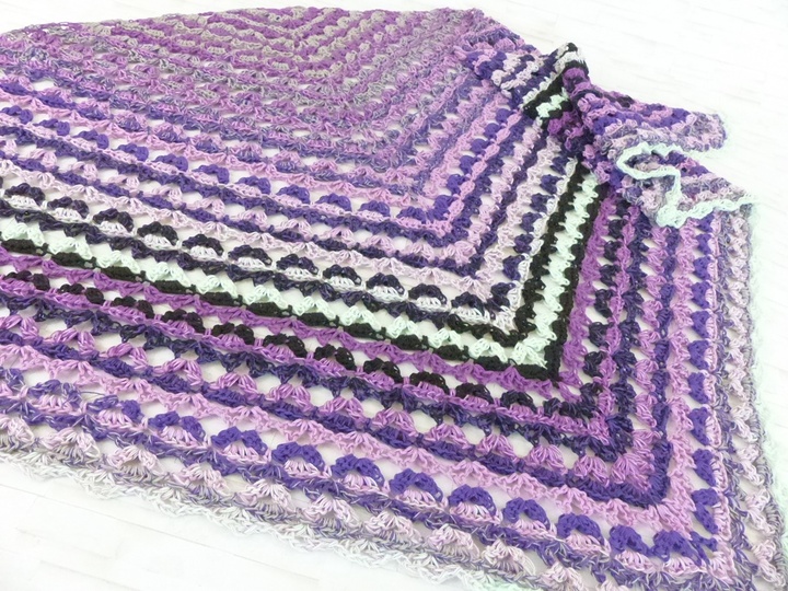 Das Tuch kann zweifarbig => also mit zwei unterschiedlichen Bobbel gehäkelt werden. Es sieht aber auch schön mit einem Farbverlaufsgarn aus. Die Anleitung beinhaltet dazu zwei verschiedenen Häkelschriften.