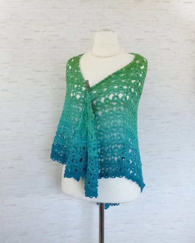 Das Muster ist sehr einfach zu häkeln und prägt sich schon nach kurzer Zeit ein. Lochmuster & Büschelmaschen wechseln sich ab. Natürlich kann es auch mit einem schönen Merinogarn gehäkelt werden. Dann ist es auch für den Winter geeignet.