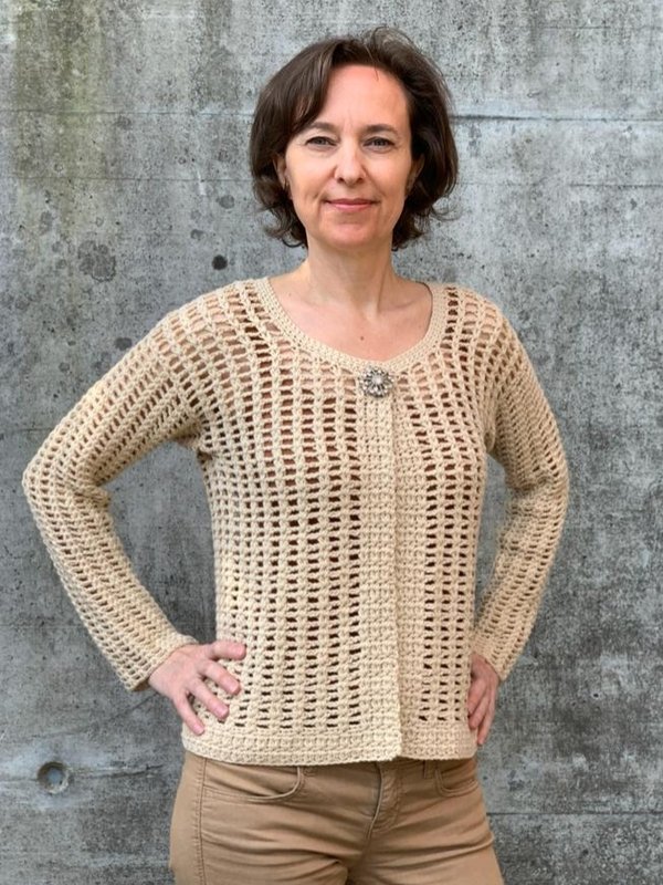 Willst du eine bequeme und kuschelige Sommerjacke arbeiten, die perfekt zu deiner Figur passt. Die Jacke wird von unten nach oben ohne Seitennähte gearbeitet.