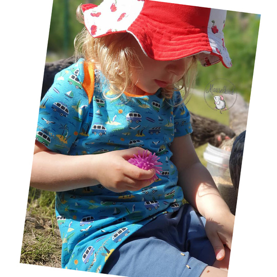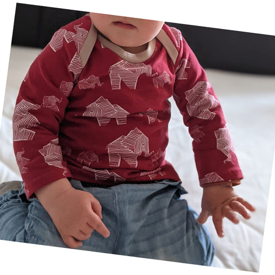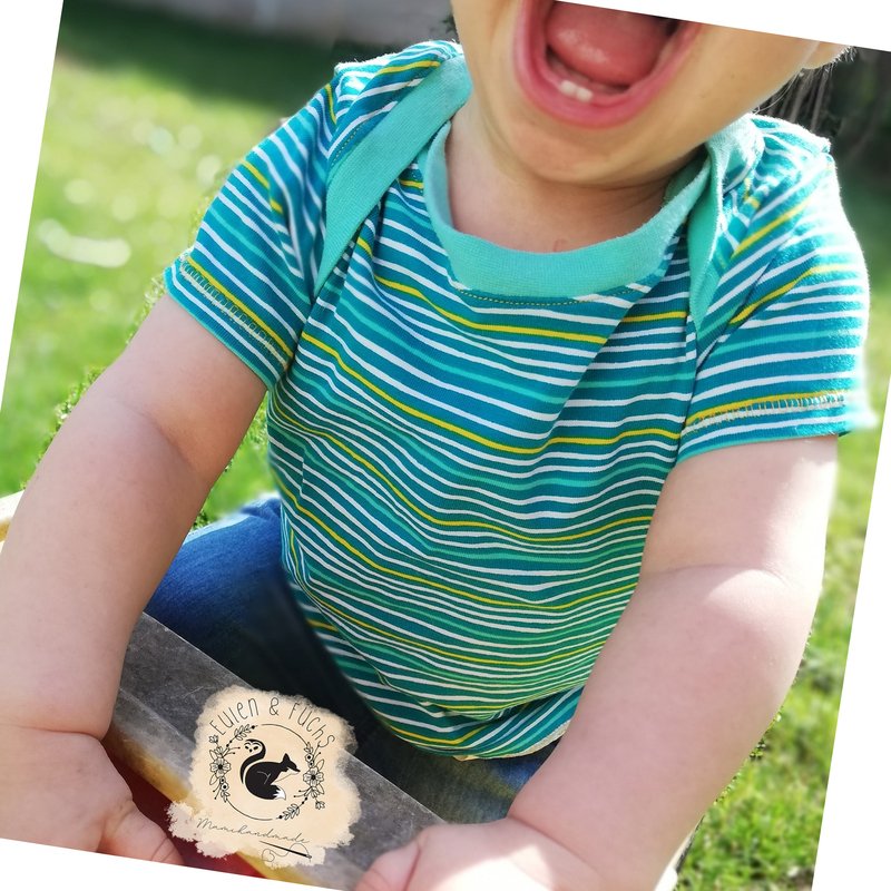 Vom Klassiker der Erstlingsausstattung bis zum Lieblings-T-Shirt in der KiTa: Babyshirt / Kleinkindershirt mit amerikanischem Ausschnitt. Der Schlupfausschnitt lässt sich beim Neugeborenen leicht über den Kopf ziehen und auch Kindergartenkinder können sich ihr T-Shirt ebenso leicht anziehen.