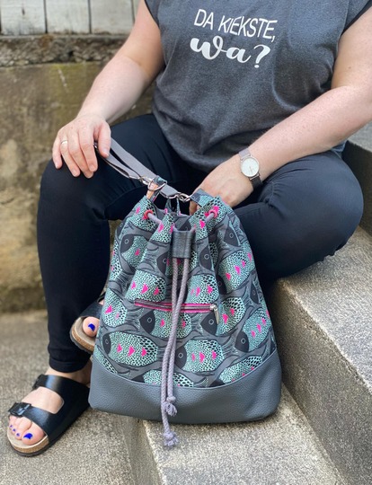 Laetizia ist eine lässige Bucket Bag, die dank ihrer mittleren Größe der optimale Begleiter für viele Gelegenheiten ist. Du kannst sie als Schultertasche oder Crossbody tragen, bunt oder dezent halten. Durch zwei unterschiedliche Kordelzuglösungen, sowie verschiedene Möglichkeiten für Henkel bietet sie dir viel Gestaltungsspielraum. In der Anleitung zeige ich dir außerdem, wie du mit wenigen Handgriffen aus der Beutelform einen praktischen Shopper zaubert. Natürlich kommt auch das Innenleben nicht zu kurz und so gibt es wieder eine Reihe verschiedener Innenfächer, aus denen du deine Lieblingskombi ganz nach deinem Geschmack wählen kannst. So behältst du trotz lässiger Taschenform immer den Überblick. Laetizia ist auch für Anfänger mit geringen Vorkenntnissen gut umzusetzen.