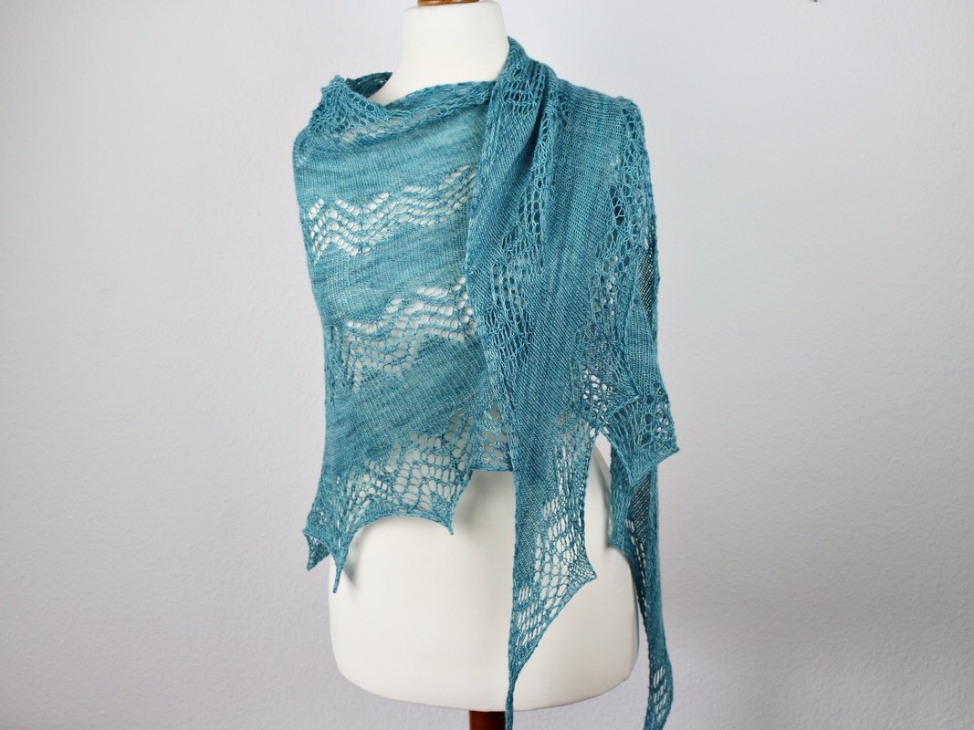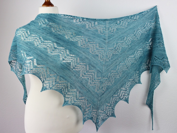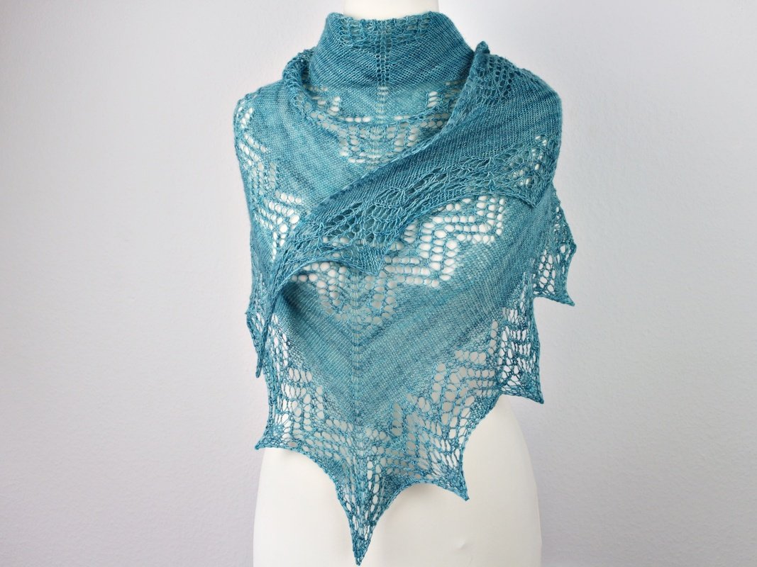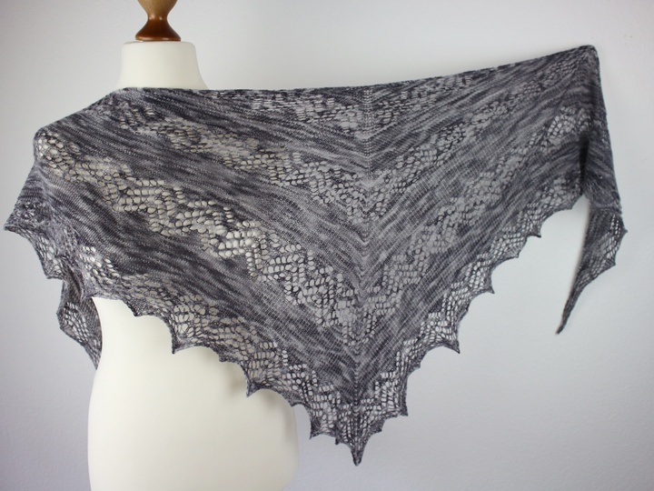 Lorina ist ein klassisches Dreieckstuch mit einem zarten Lochmuster. Gestrickt ist dieses Tuch aus einem feinen Lacegarn womit es zu einem idealen Sommerprojekt wird.