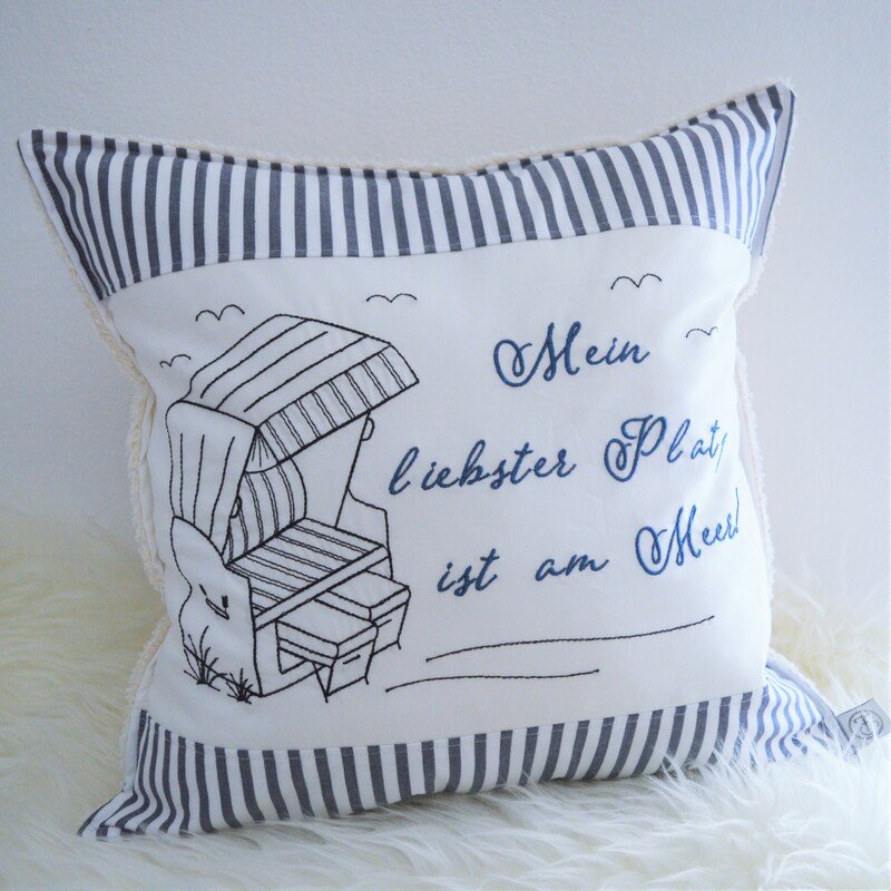Strandkorb mit Spruch "Mein liebster Platz ist am Meer!", enthalten in 4 Größen