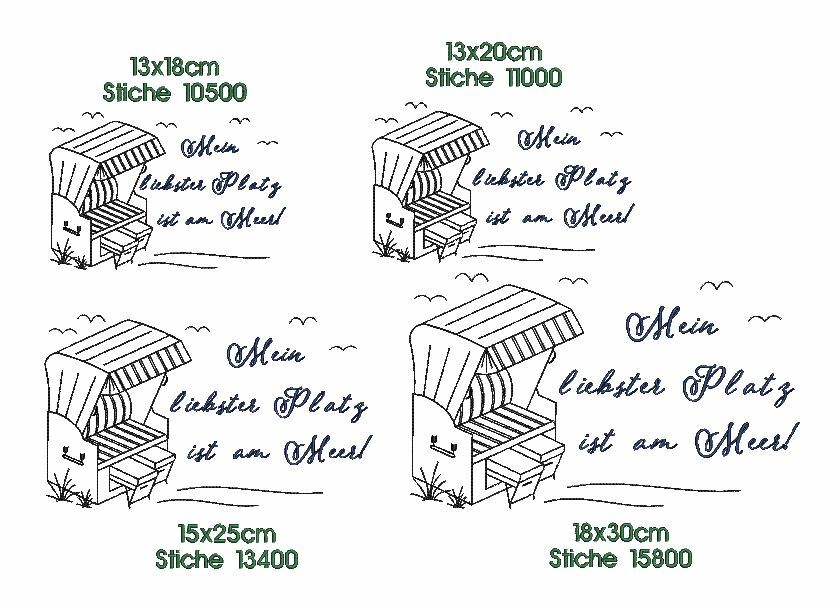Stickdatei Strandkorb als Redwork Stickdatei mit Spruch,