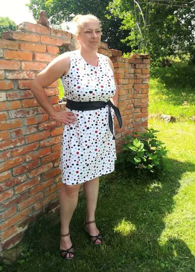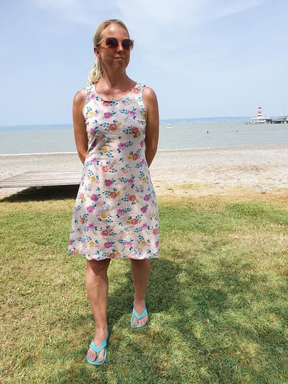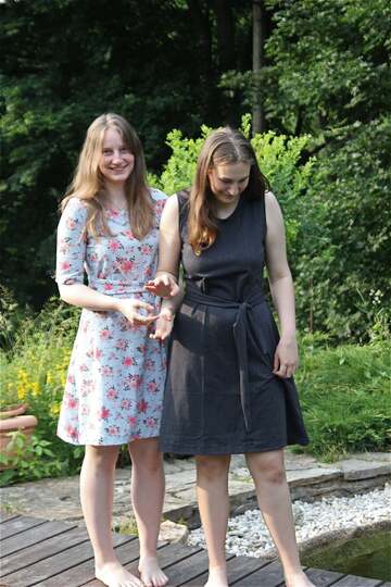 Designdetails: leichte A-Linie, 2 Rocklängen, Rundhalsausschnitt mit Beleg oder Bündchen, kurzer oder 3/4 tel langer Ärmel, Taillengürtel (spitz oder rund), Brust- und Rückenabnäher