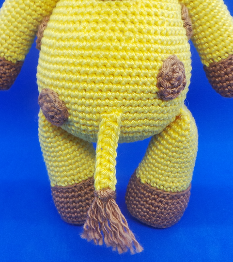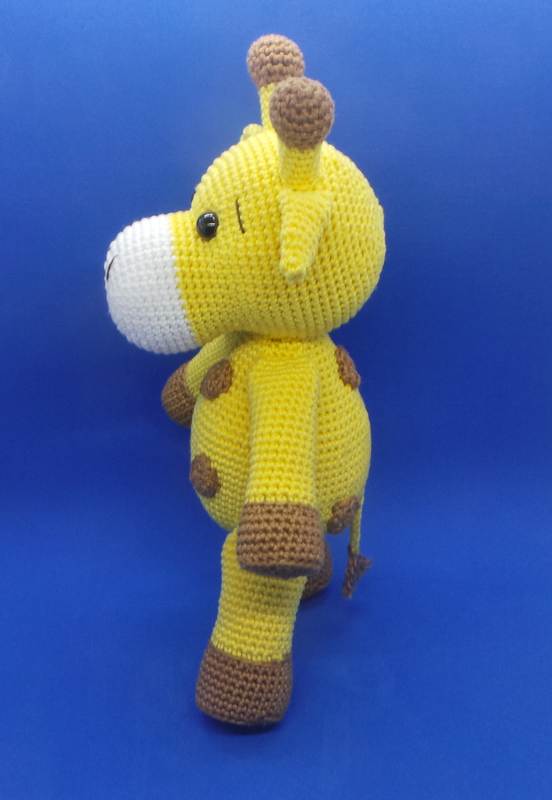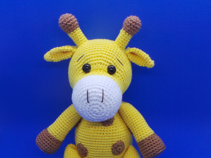 Mit einem Baumwollgarn 50g/125m und Häkelnadel 2,5mm gehäkelt wird sie etwa 24cm groß.Du kannst die Giraffe Gitti mit jedem anderen Garn/Wolle häkeln, mit entsprechender Nadelstärke für das von dir verwendete Garn/Wolle. Je nach dem, wie dick oder dünn dein Garn/Wolle ist und wie fest oder locker du häkelst wird die Figur kleiner oder größer ausfallen.