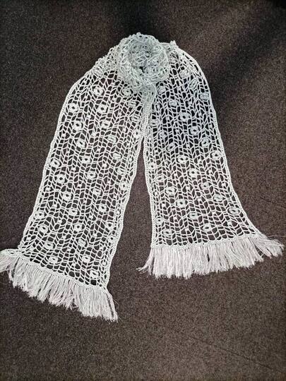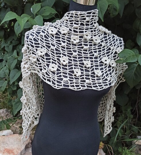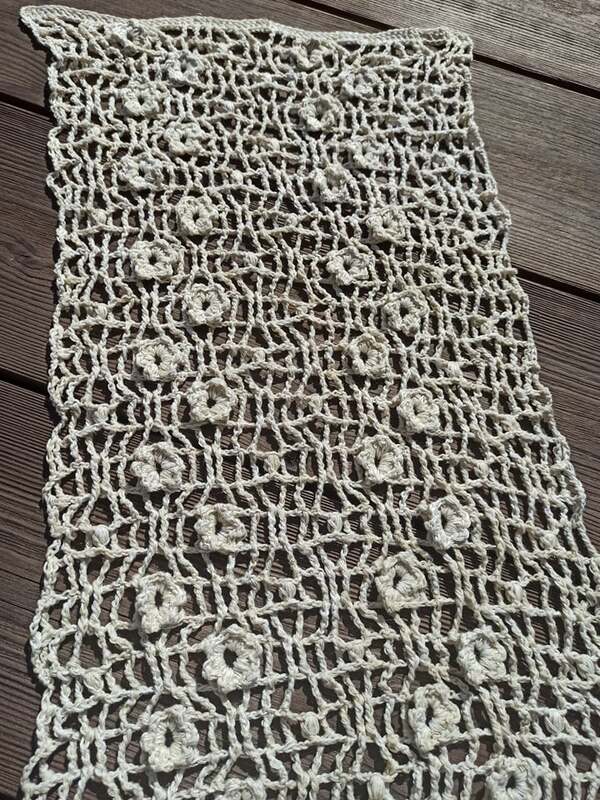 Aus weißem Garn ergibt es eine wunderschöne Hochzeitsstola mit Blumenmotiv.